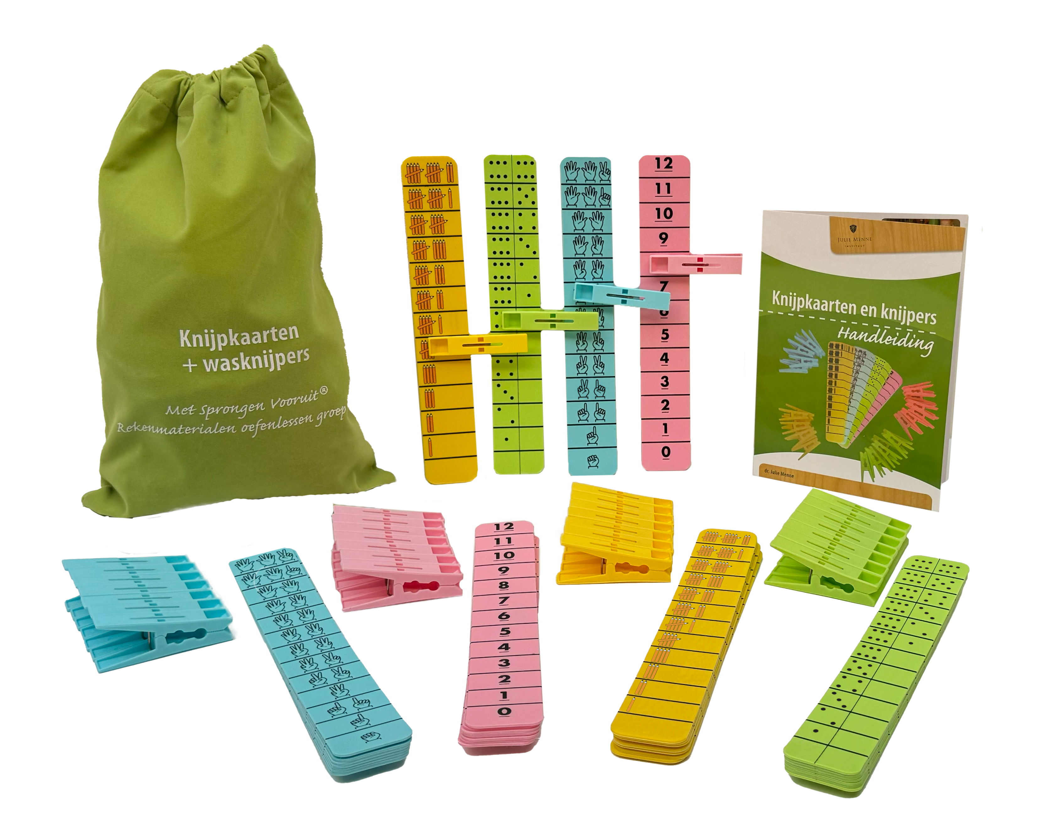De knijpkaarten en knijpers zijn ook onderdeel van de ladekast Rekenmaterialen oefenlessen groep 1&2 - Hele Getallen, Meten, Meetkunde en Verbanden