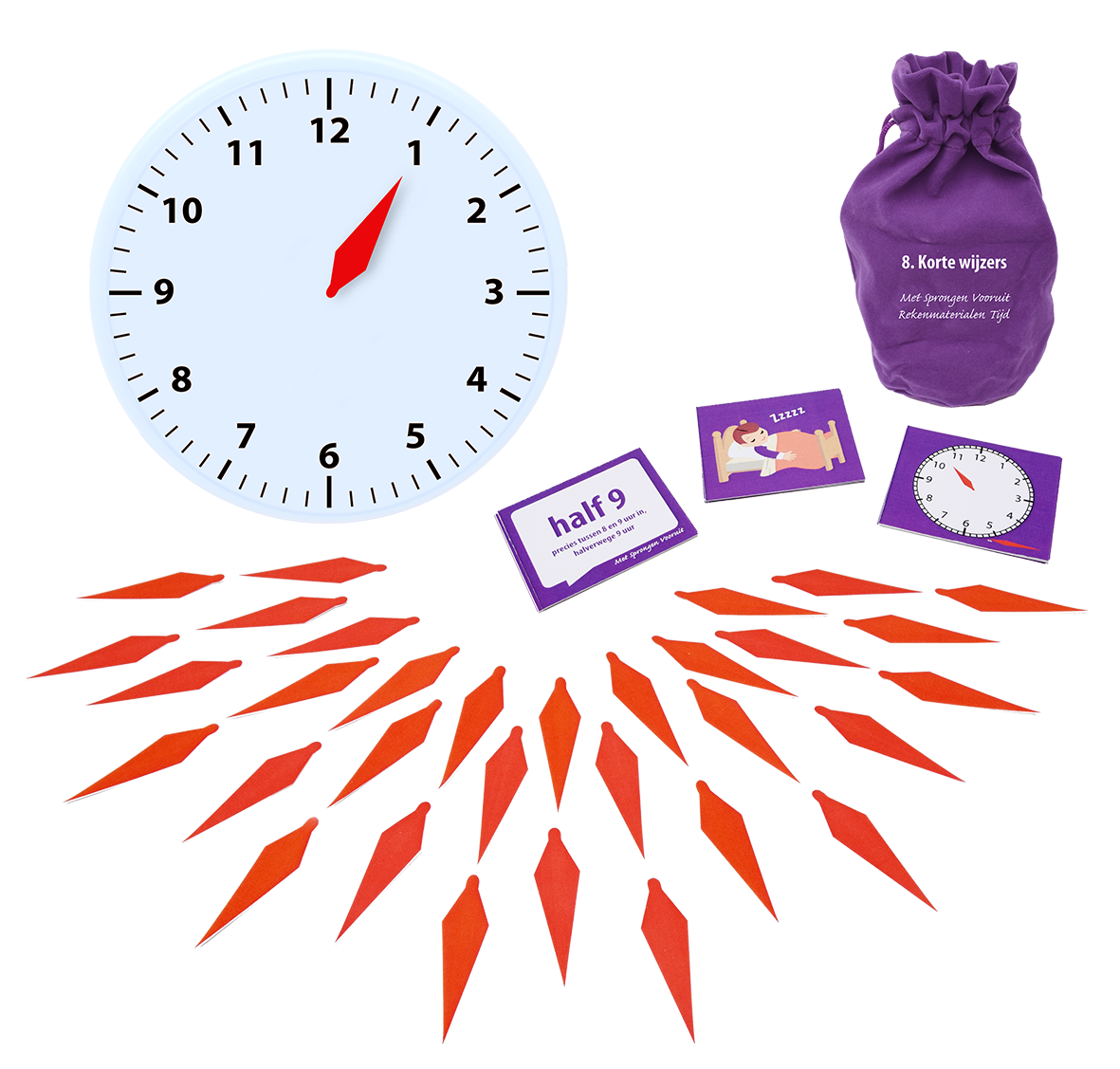 In deze ladekast vindt u materialen en spellen op het gebied van Tijd die u ondersteunen in het verzorgen van het doelendekkende reken-wiskundeprogramma Met Sprongen Vooruit. Met de materialen en spellen leren leerlingen klokkijken, zowel op een wijzerplaat- als viercijferige positieklok. In de bijbehorende handleiding treft u bij elk materiaal een of meerdere voorbeeldlessen aan (ook voor buiten!) voorzien van de rekendoelen, suggesties voor vereenvoudiging, verdieping en variatie. Bij de spellen staan, behalve de spelregels, ook de didactische aanwijzingen voor het behalen van de doelen beschreven. In de instructiefilmpjes, die u bij deze kast krijgt, wordt elk spel in 2 minuten uitgelegd. Verder is er per les en per spel aangegeven waar deze zich in de leerlijn bevinden. De inhoud van deze kast komt zowel aan de orde in de cursus Met Sprongen Vooruit groep 3&4 Vervolg als in de cursus Met Sprongen Vooruit groep 5&6 Vervolg. Er is gezorgd voor zo weinig mogelijk overlap. Bij beide cursussoorten krijgt u de kopieerbladen waarmee u een complete leerlijn Leren klokkijken in handen heeft.