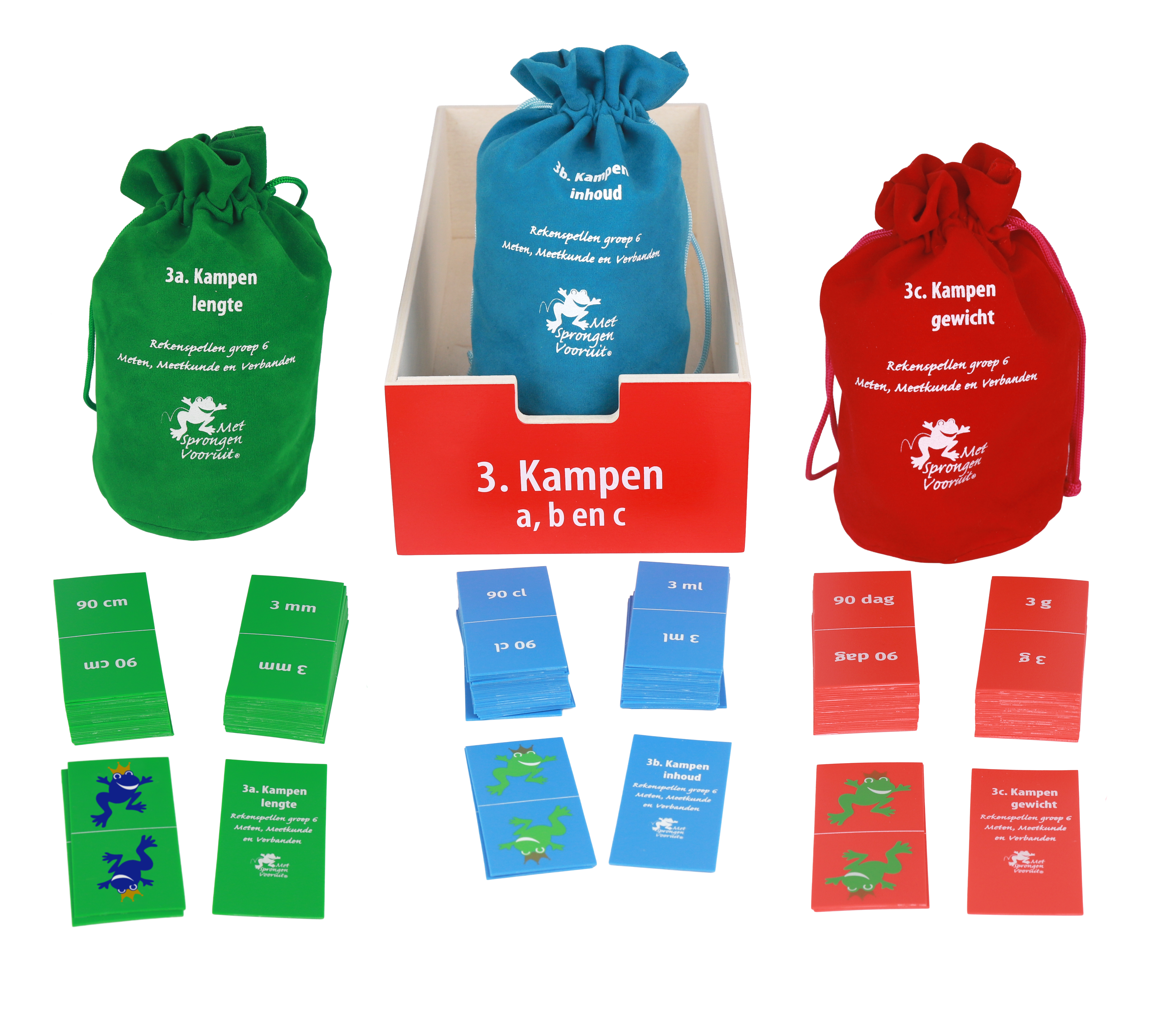 In deze ladekast vindt u dertien educatieve rekenspellen die u ondersteunen bij het geven van het doelendekkende reken-wiskundeprogramma Met Sprongen Vooruit. De spellen, waarvan ook eentje voor buiten, maken deel uit van de leerlijn Meten, Meetkunde en Verbanden. De spelregels en didactische aanwijzingen voor het behalen van de doelen leest u in de handleiding. Hierin is ook per spel aangegeven waar het in de leerlijn past. Daarnaast krijgt u toegang tot de instructiefilms waarin elk spel in 2 minuten wordt uitgelegd. De spellen zijn goed in te zetten tijdens de verlengde instructie, pre-teaching, remedial teaching en een spellencircuit. In de cursus Met Sprongen Vooruit groep 5&6 Vervolg komen deze spellen ook aan de orde.