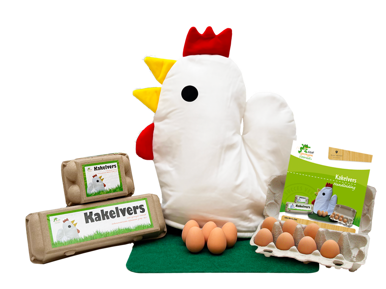 Tokkie de kip, haar eieren en grasmat zijn ook een onderdeel van de ladekast Rekenmaterialen oefenlessen groep 1&2.