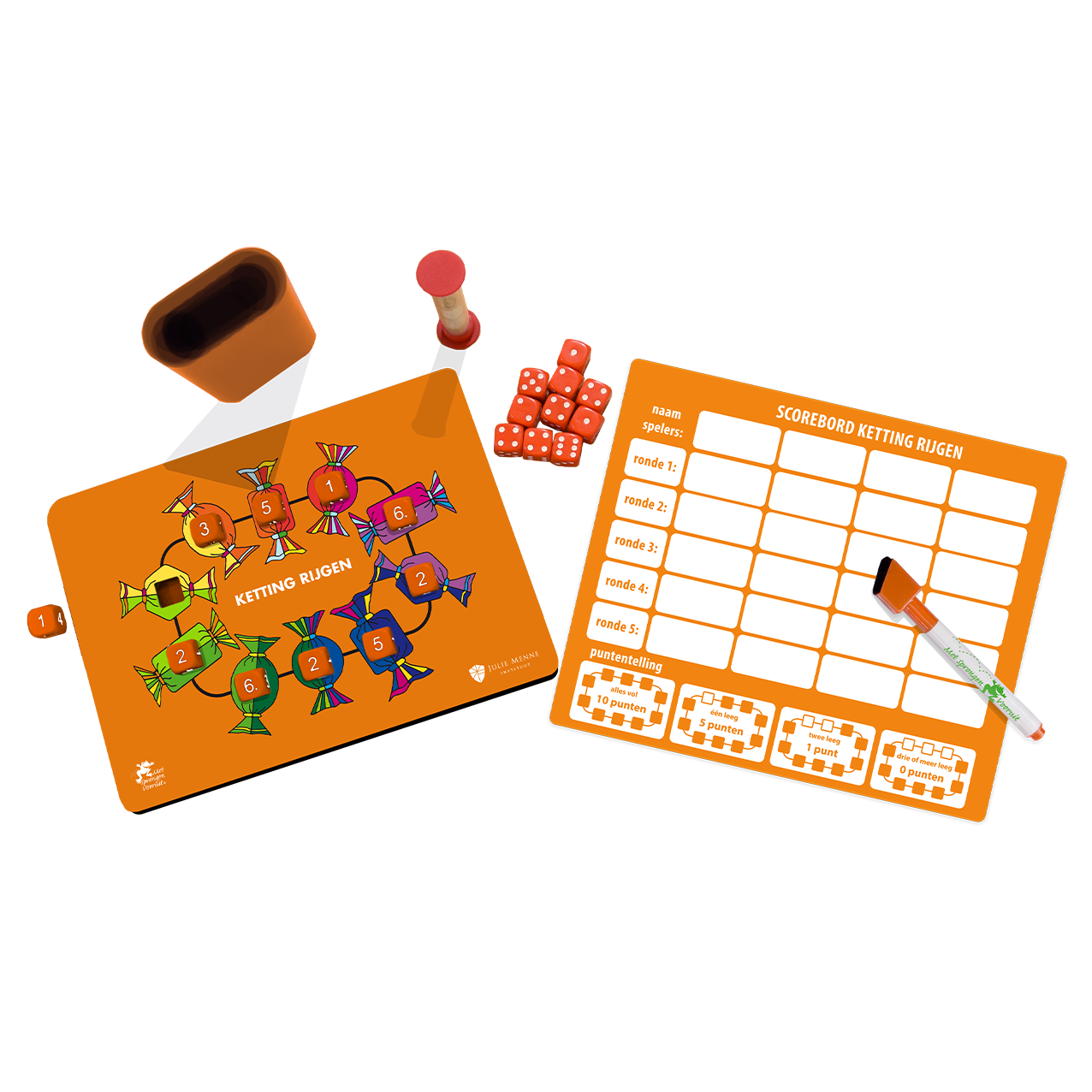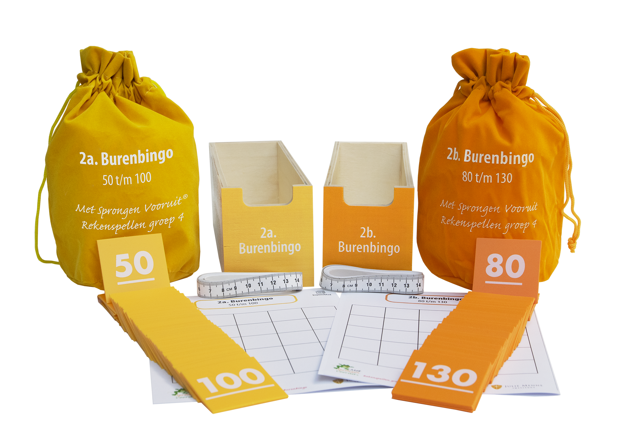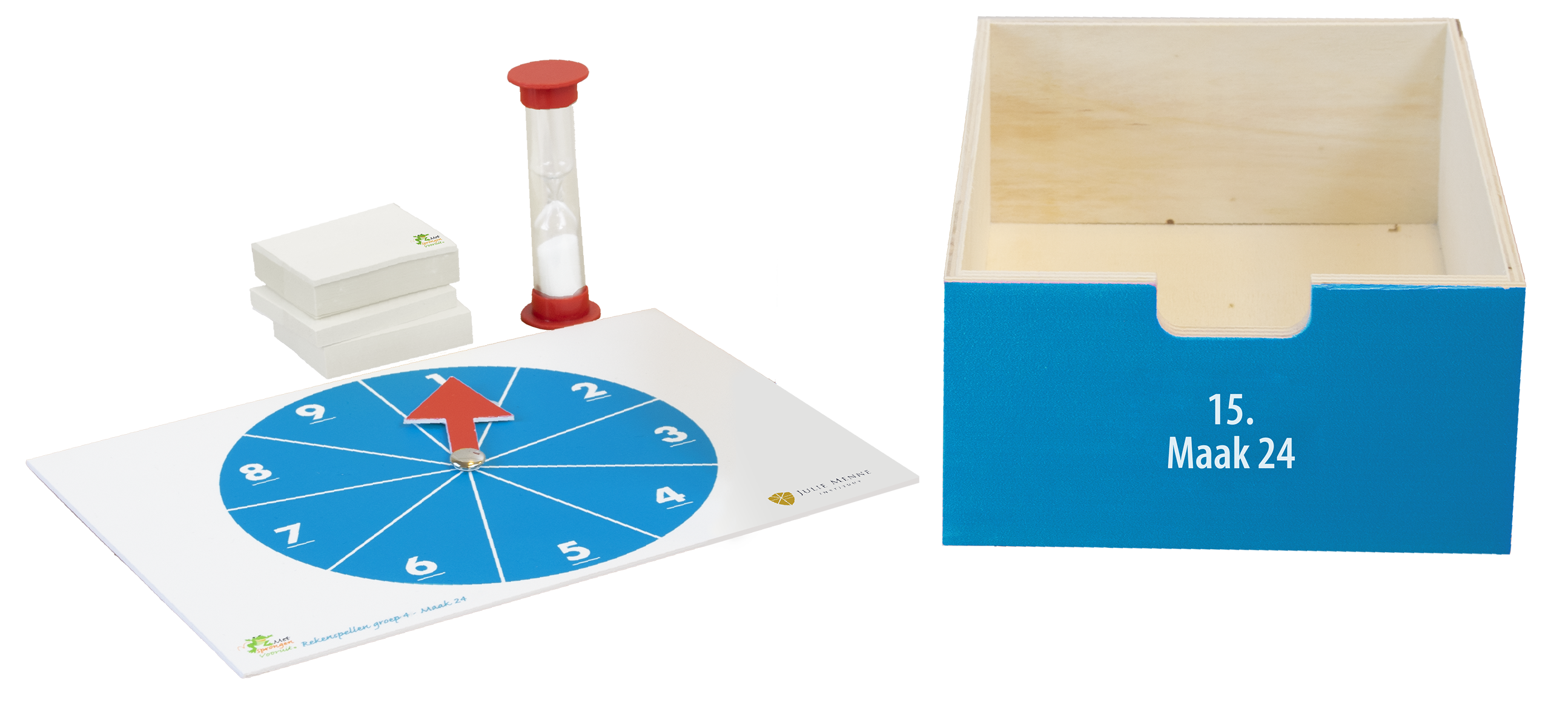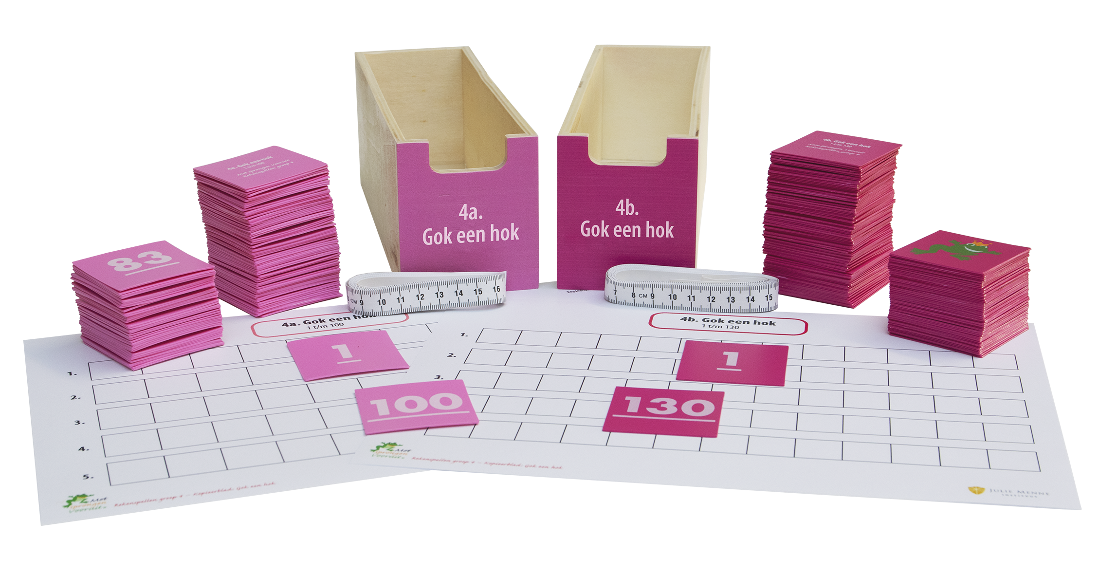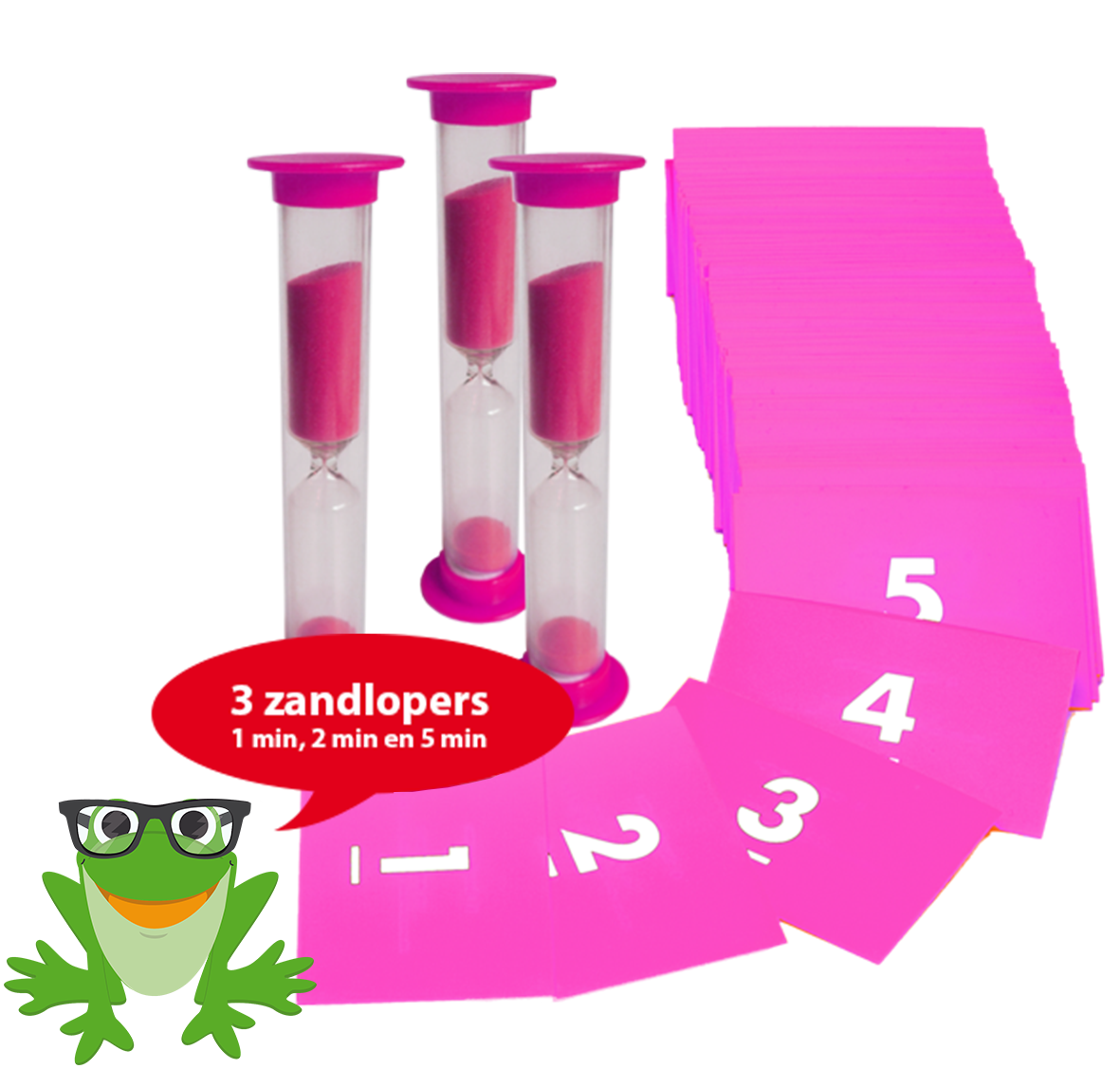 • Getalkaarten 1 t/m 130 met zandlopers (1, 2 en 5 minuten)