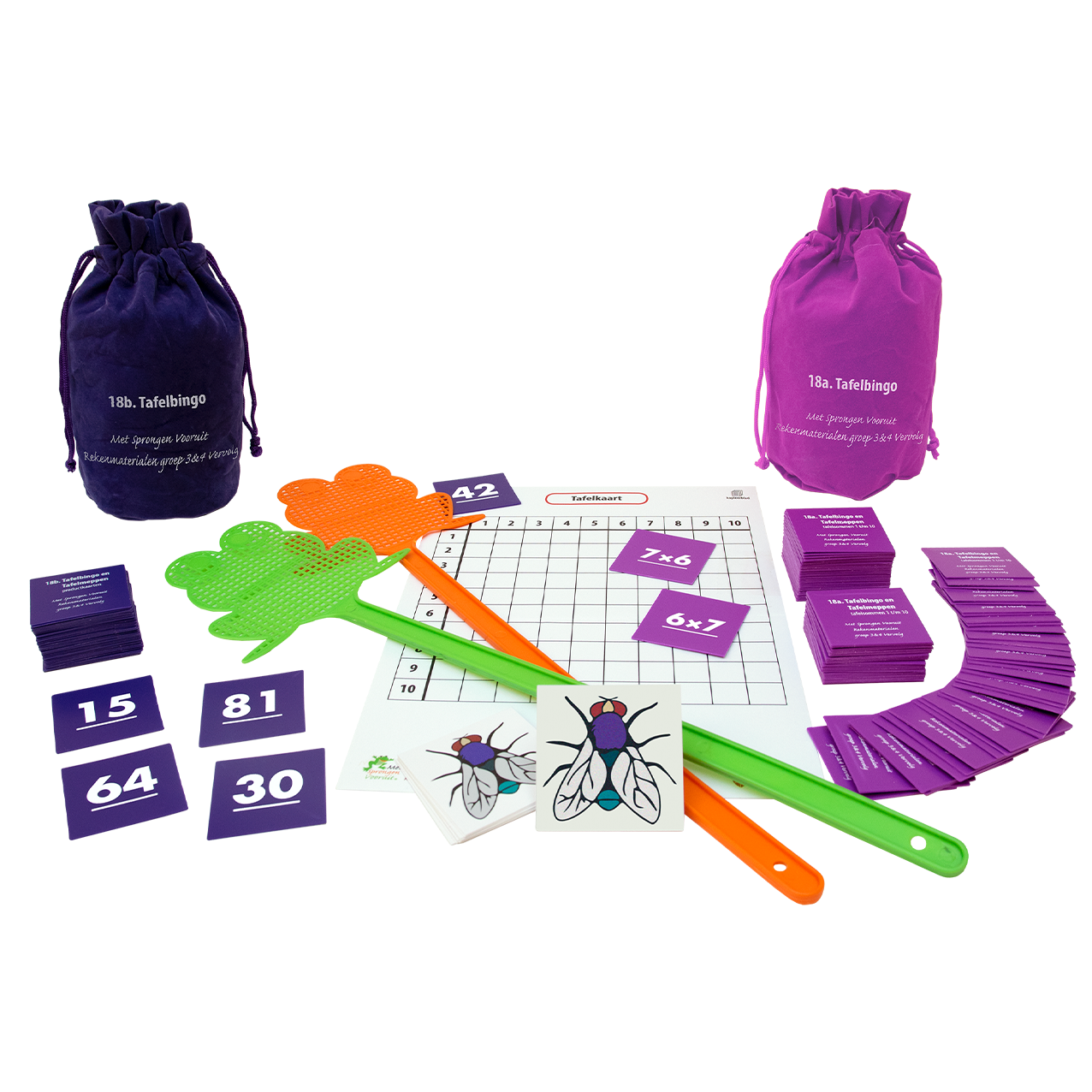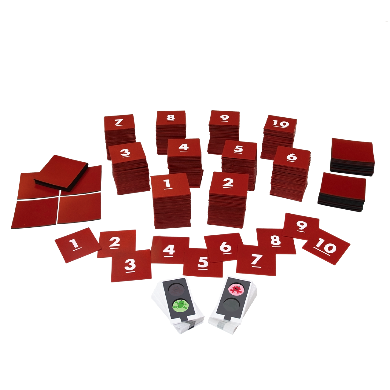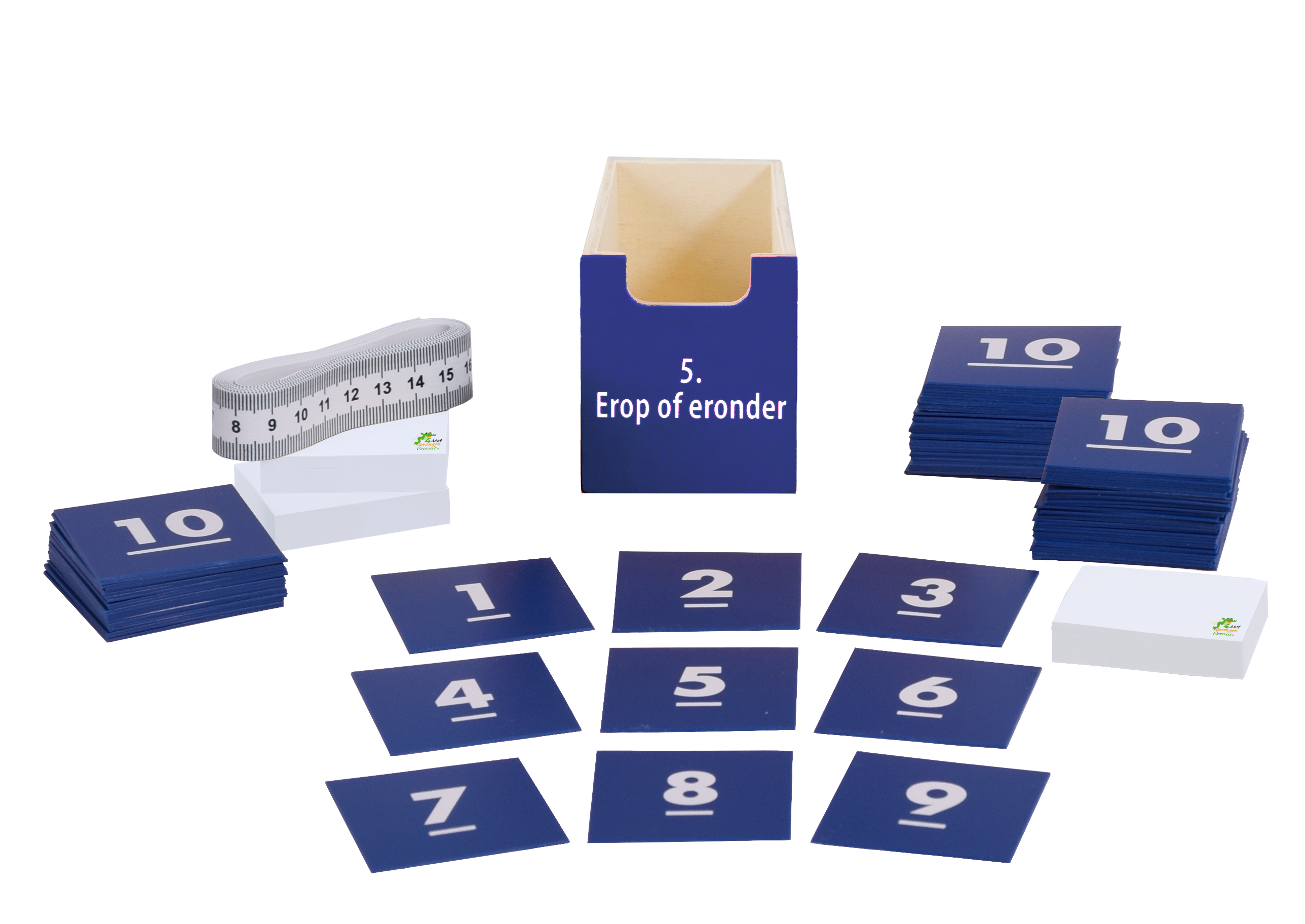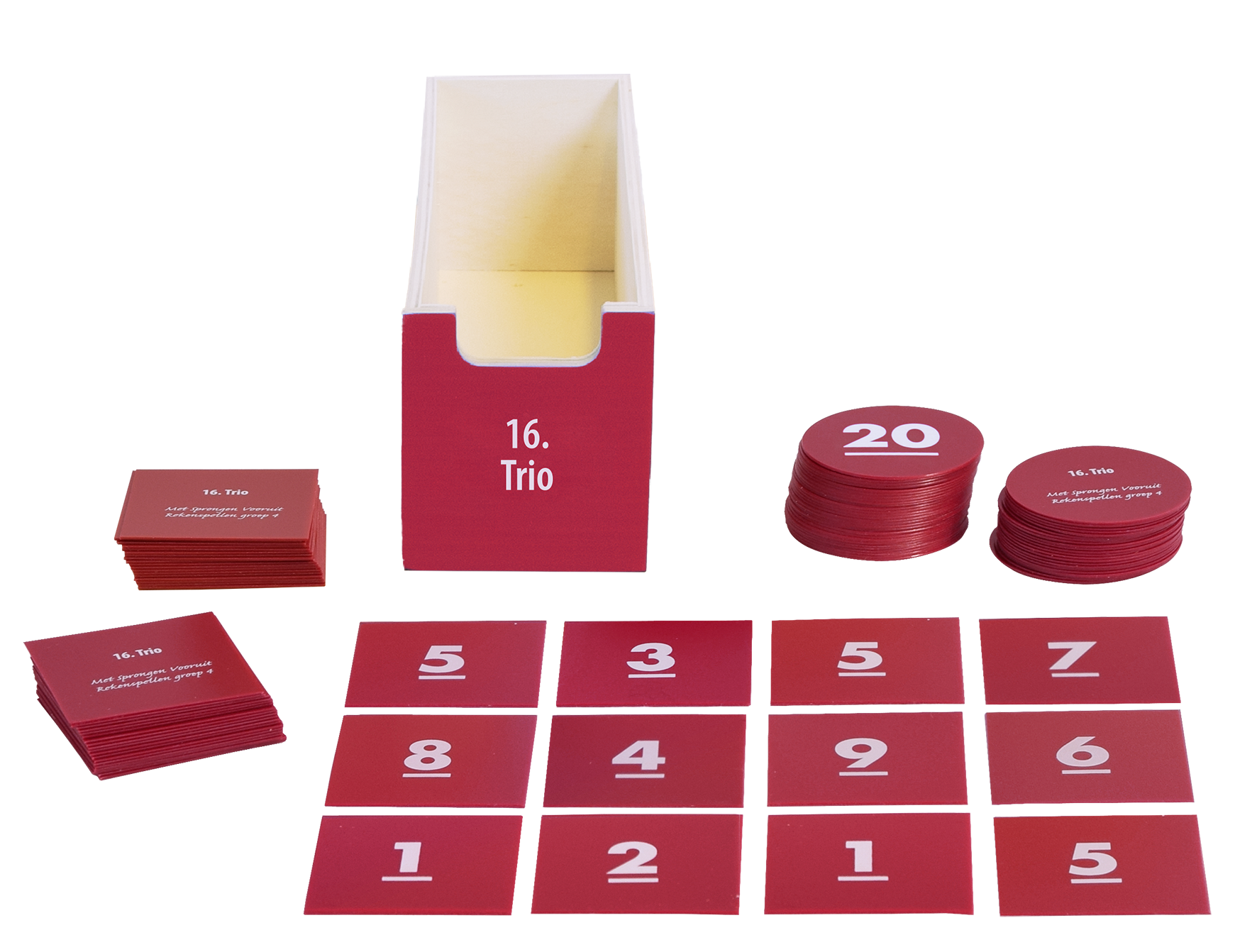 • Kaarten 1 t/m 10 (600), magnetische kaarten 1 t/m 10 (40),groene en rode verkeerslichtkaarten (64)