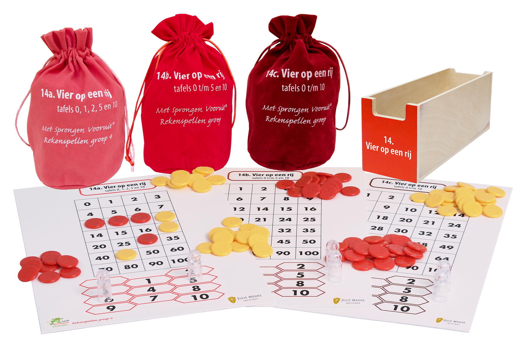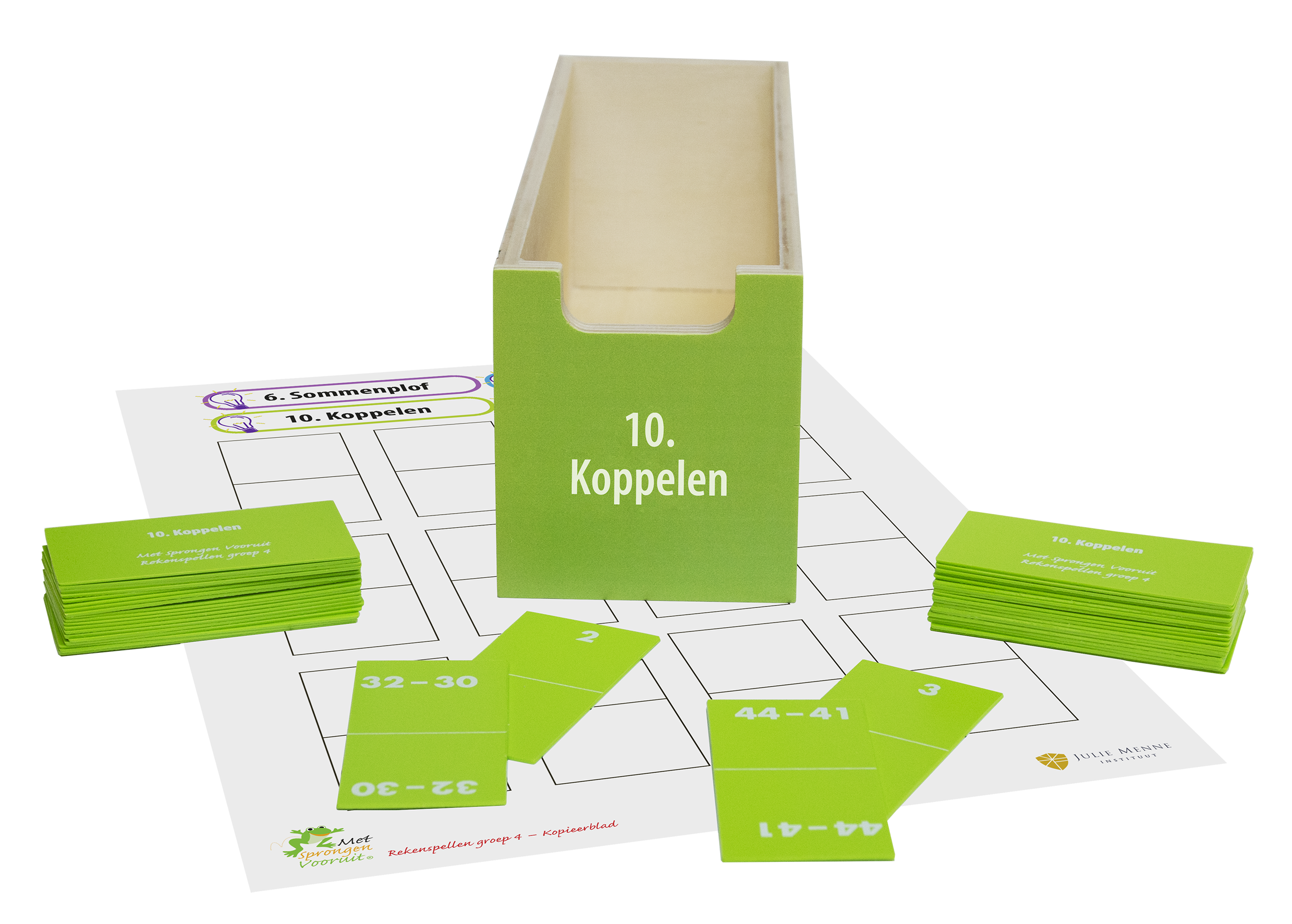 In deze ladekast vindt u achtentwintig educatieve rekenspellen, waaronder drie keer Lijntikkertje voor buiten! De gezelschapsspellen maken deel uit van de leerlijn optellen, aftrekken vermenigvuldigen en delen t/m 160 en hebben als overkoepelend doel opgaven in dit getallengebied te automatiseren. De spelregels en didactische aanwijzingen voor het behalen van de doelen staan beschreven in de handleiding. Hierin is per spel ook aangegeven waar het in de leerlijn past. Daarnaast krijgt u toegang tot de instructiefilms waarin elk spel in 2 minuten wordt uitgelegd. De spellen zijn goed in te zetten tijdens de verlengde instructie, pre-teaching, remedial teaching en een spellencircuit. In de cursus Met Sprongen Vooruit groep 3&4 Basis komen de spellen ook aan de orde.