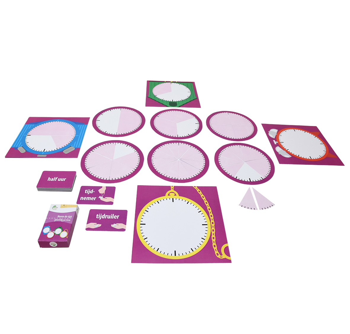 • Klok met korte wijzer, losse korte wijzers en korte-wijzerkaarten