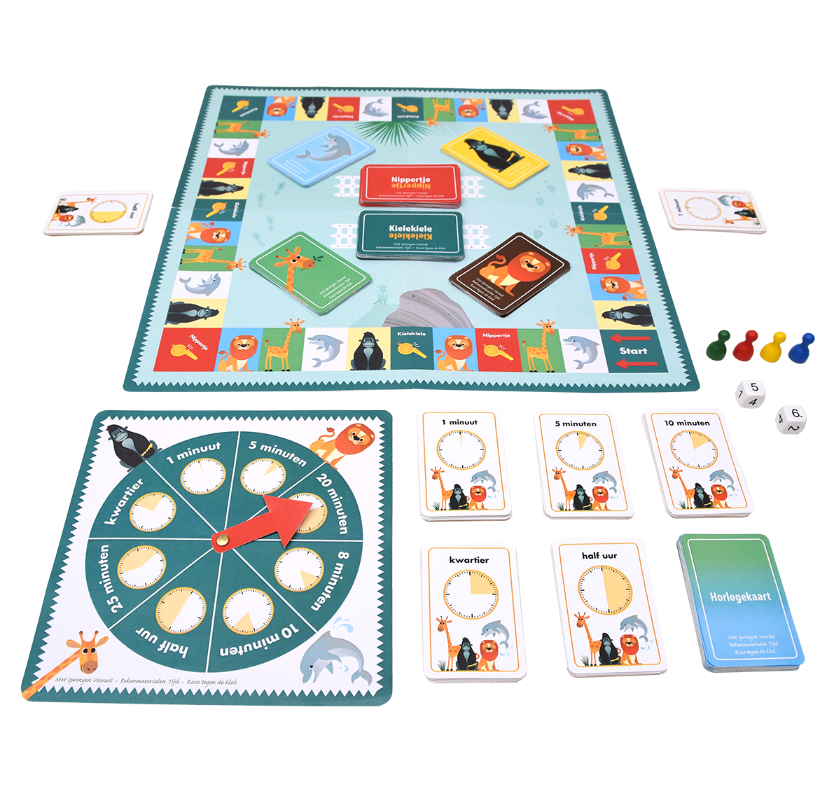 • Poppetjes en dobbelstenen met tijdsaanduiding