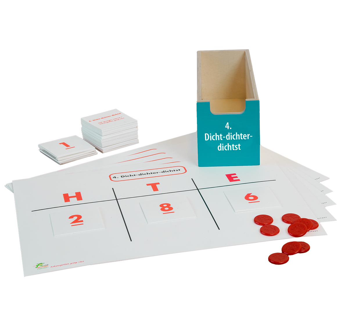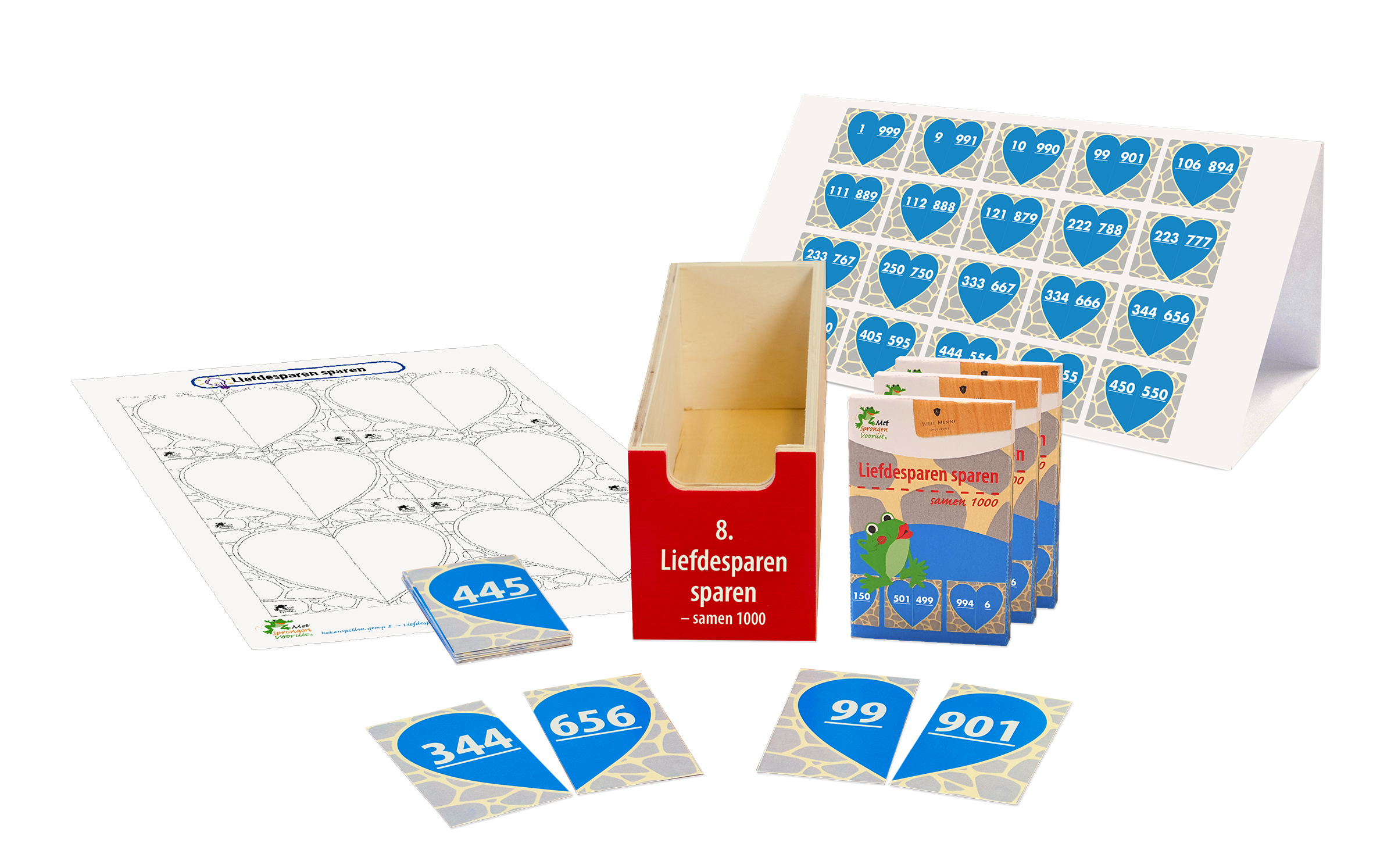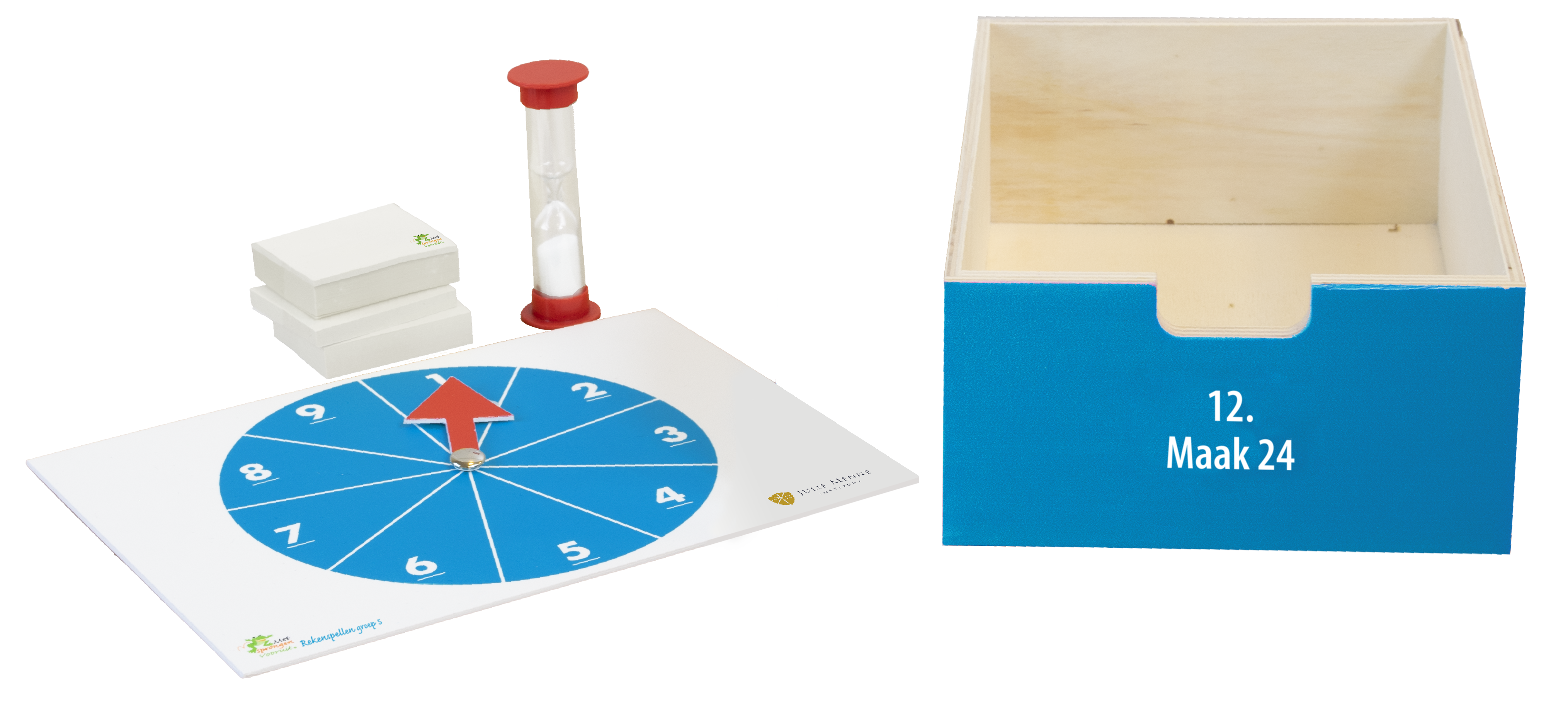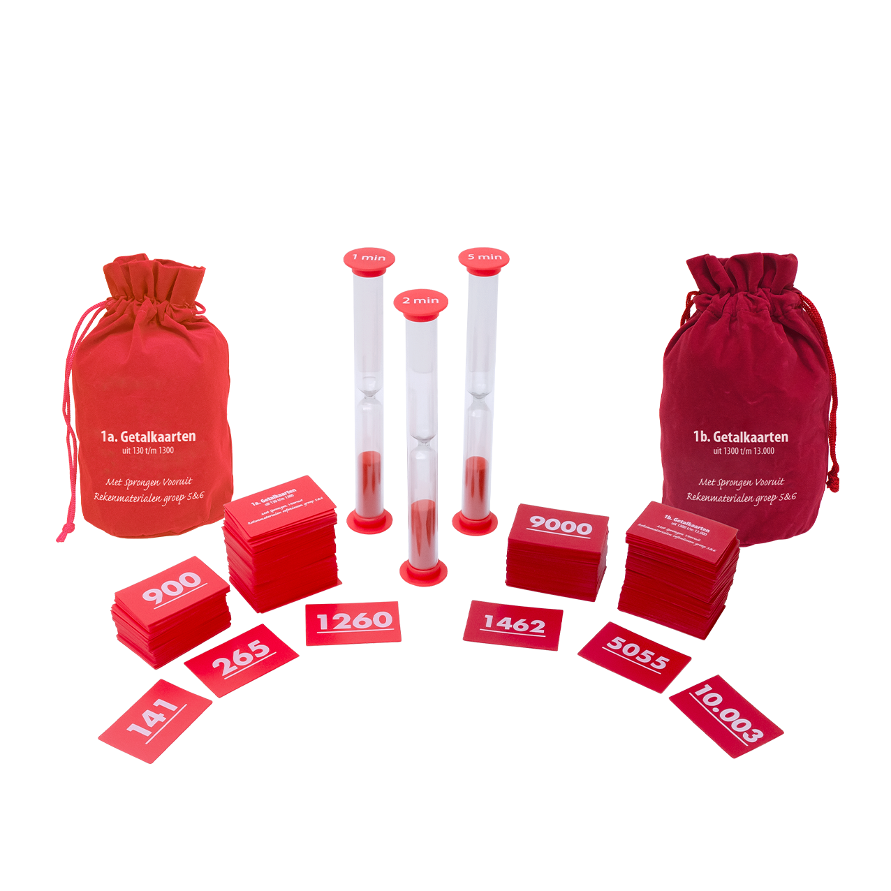 • Diverse sets getalkaarten uit het getallengebied 0 t/m 13.000 en zandlopers (1, 2 en 5 minuten)
