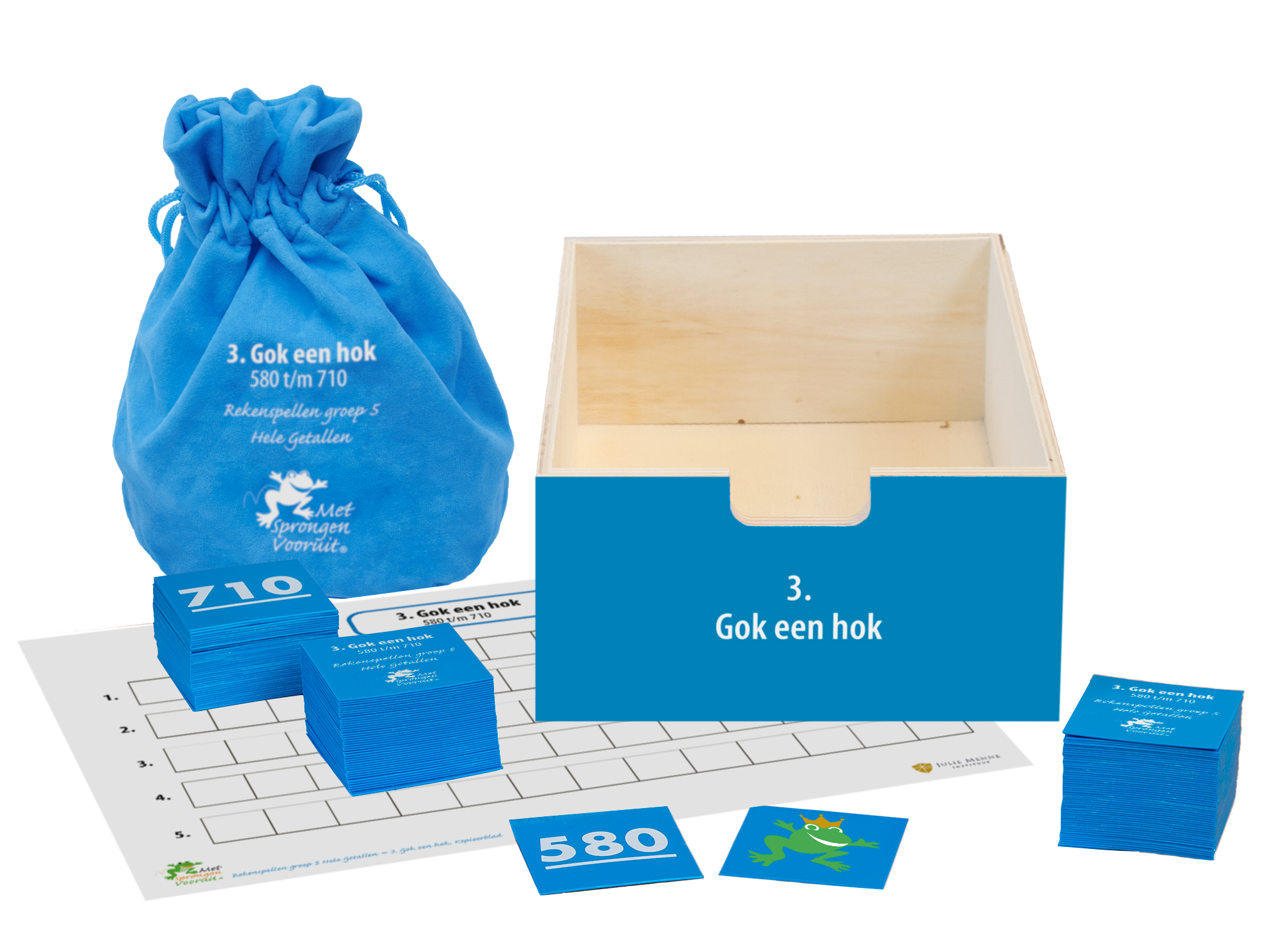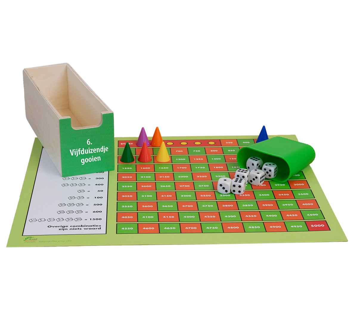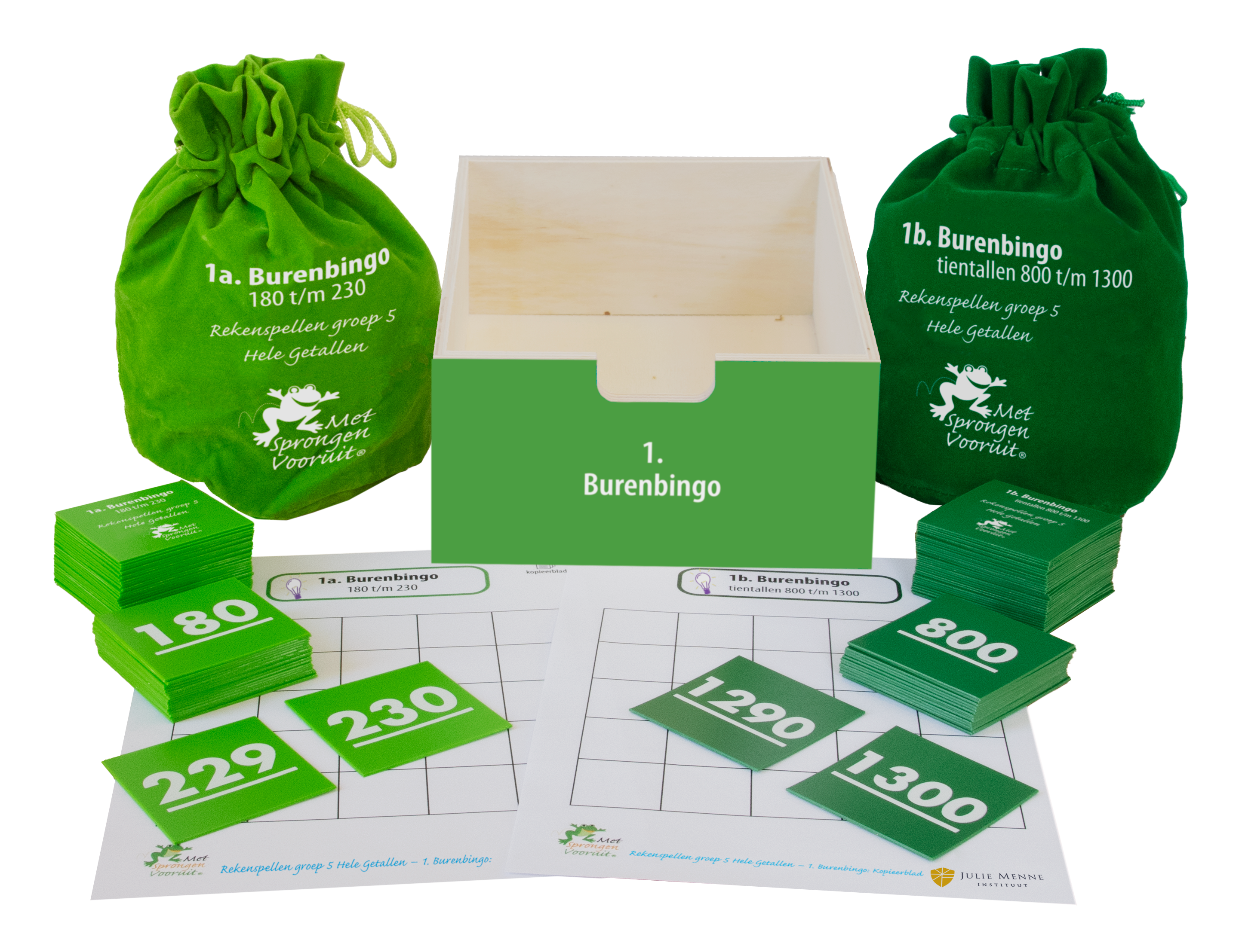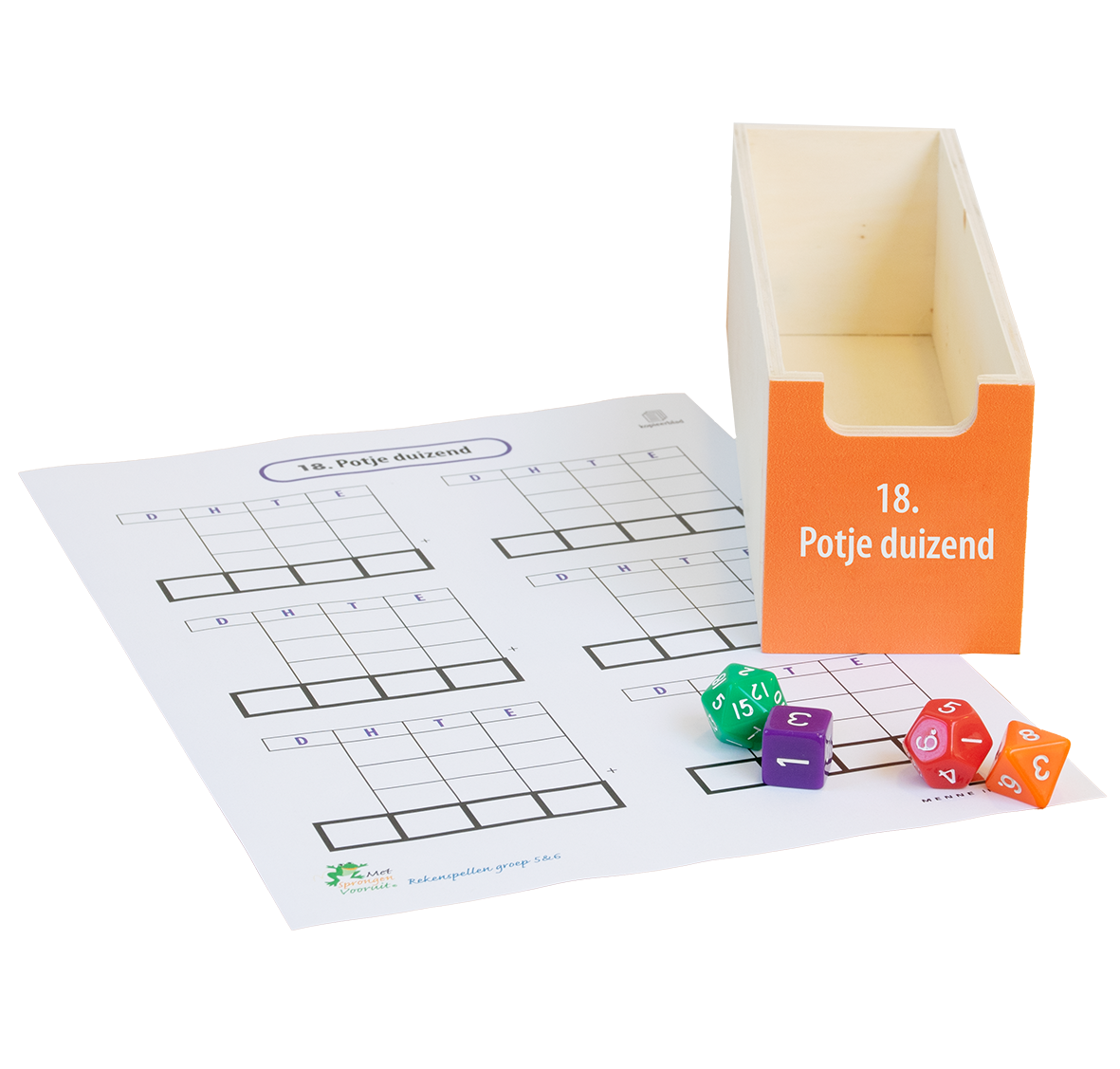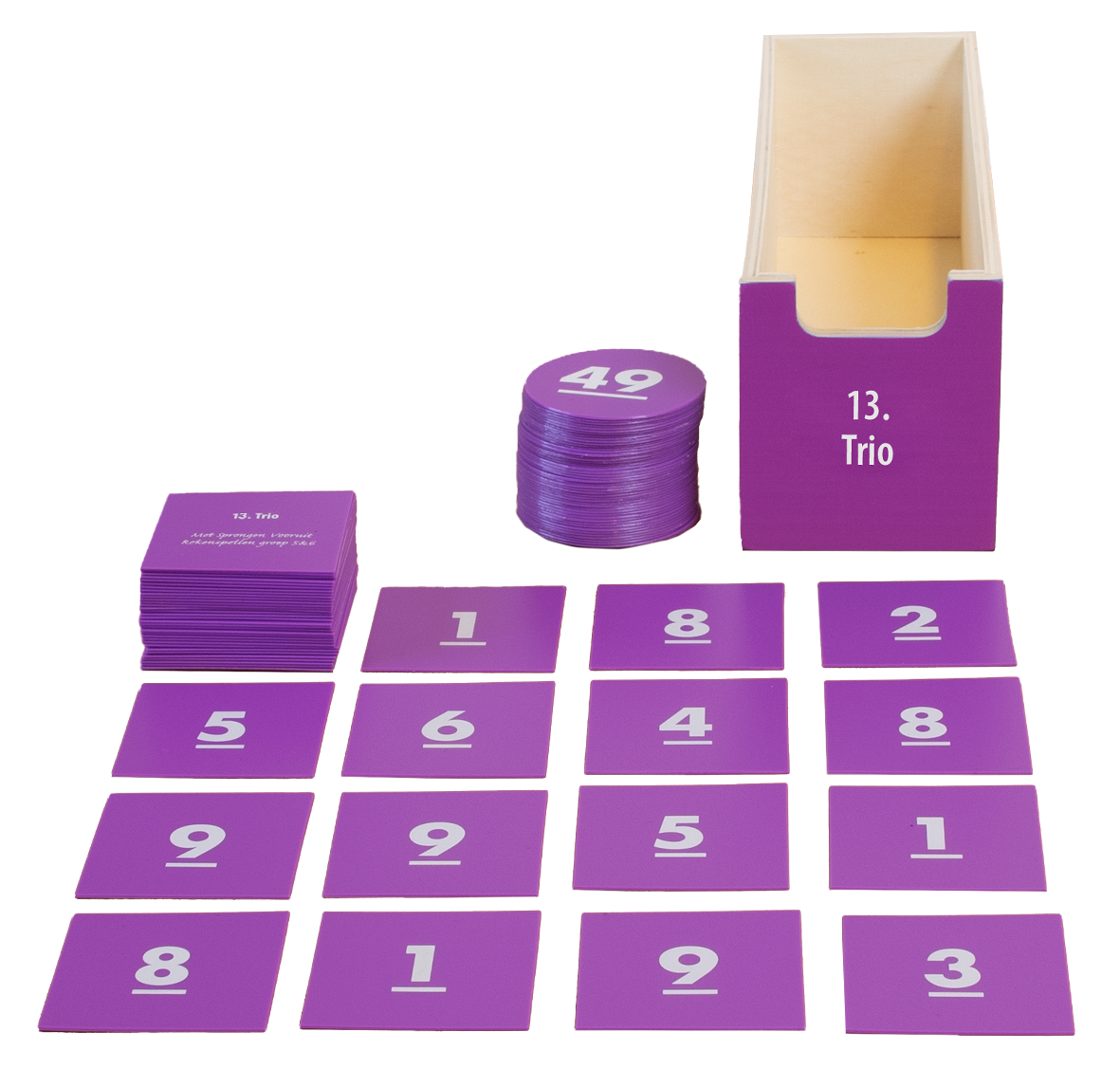 • Diverse sets getalkaarten uit het getallengebied 0 t/m 13.000 en zandlopers (1, 2 en 5 minuten)