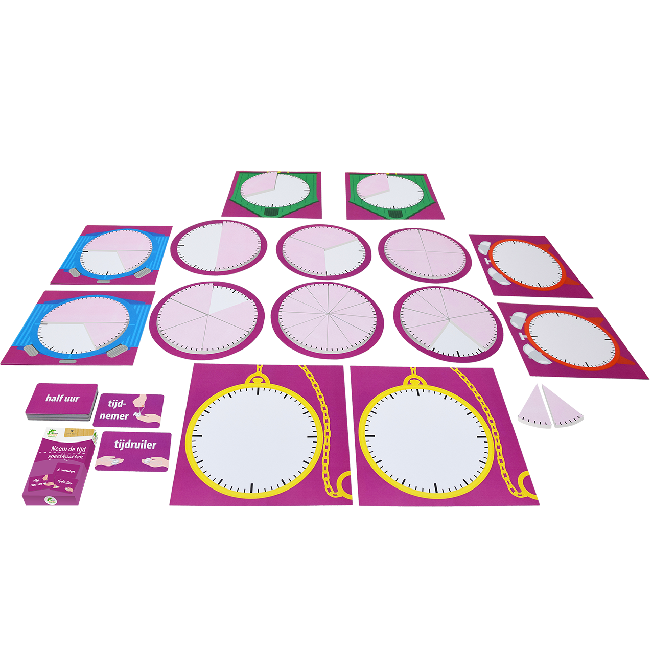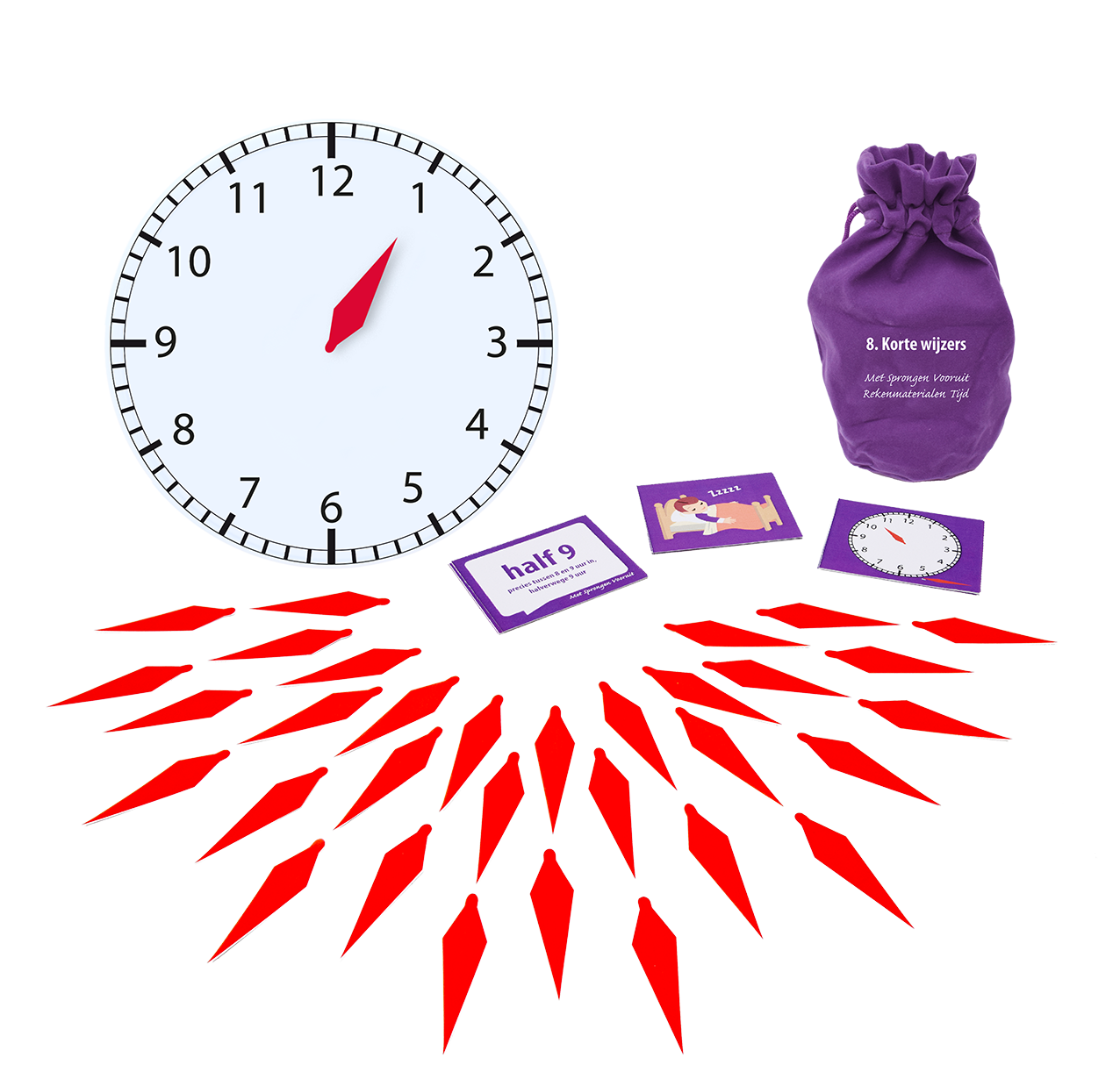 • Klok met korte wijzer, losse korte wijzers en korte-wijzerkaarten