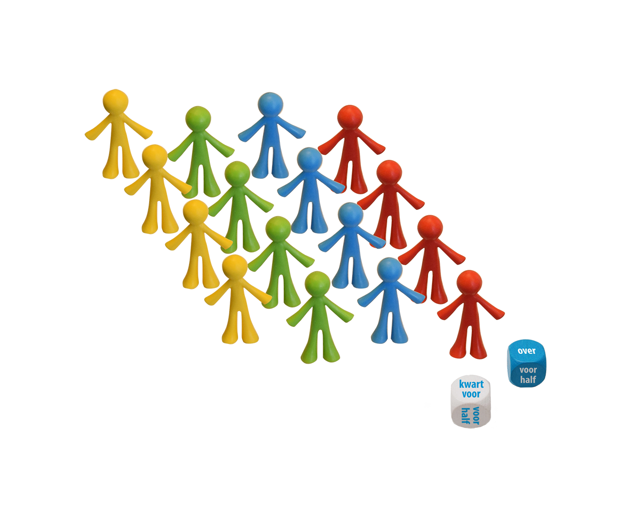 • Poppetjes en dobbelstenen met tijdsaanduiding