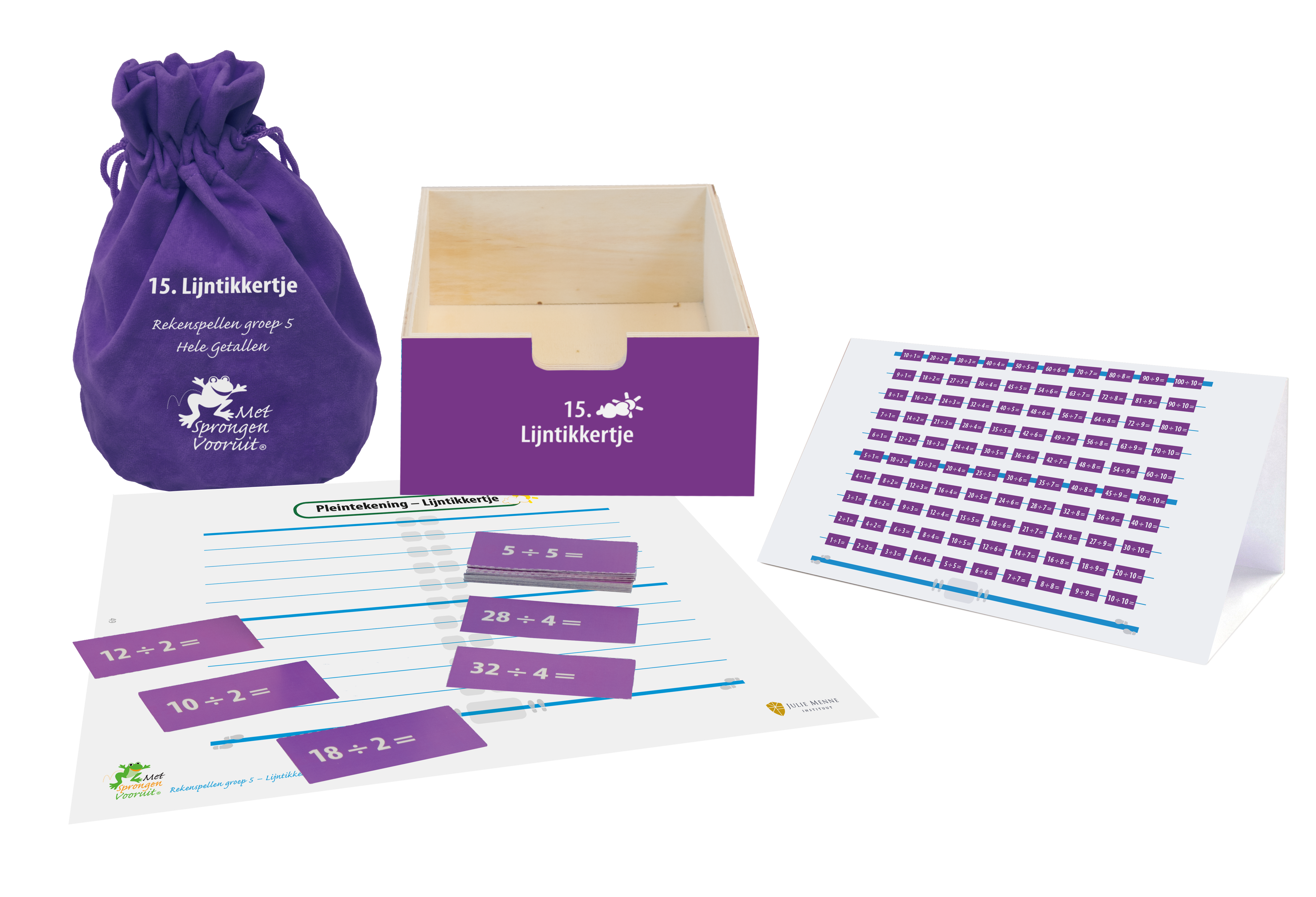 Deze ladekasten ondersteunen u bij het lesgeven met het doelendekkende reken-wiskundeprogramma Met Sprongen Vooruit en zijn in te zetten bij interactieve, klassikale oefenlessen in groep 5, verlengde instructie, pre-teaching en remedial teaching. De rekenspellen in deze kasten kunt u tevens inzetten tijdens een spellencircuit.