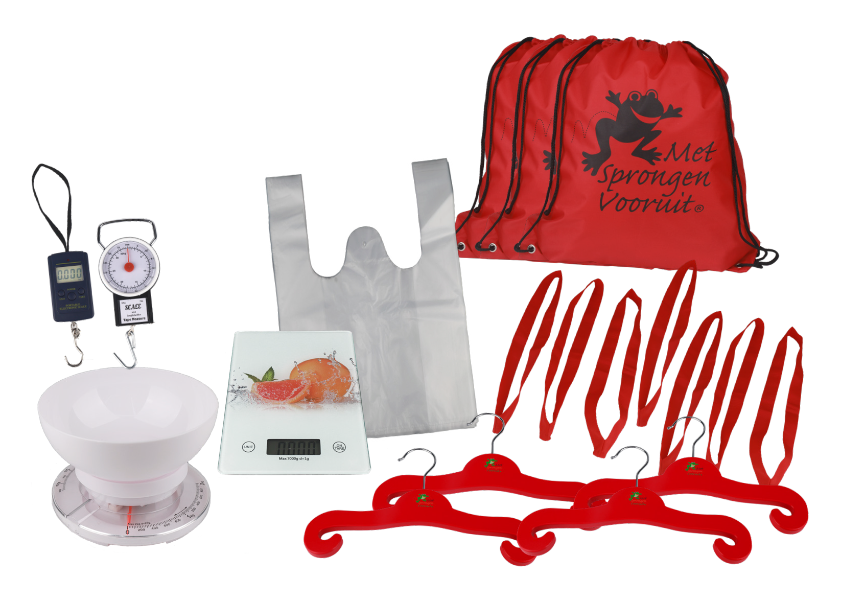 • Kledinghangers (4), linten (7), rugzakjes (3) en tassen (3)